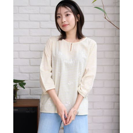 ボーダー刺しゅうブラウス
