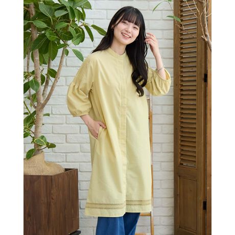 裾刺しゅうロングシャツ