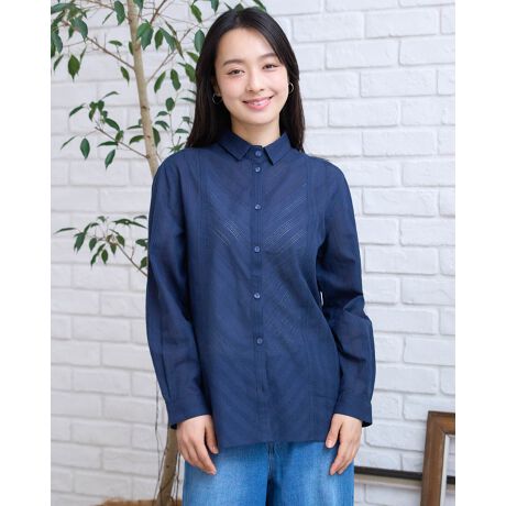 異なる織り地を組み合わせることで、表情豊かに仕上げた切替ブラウス。