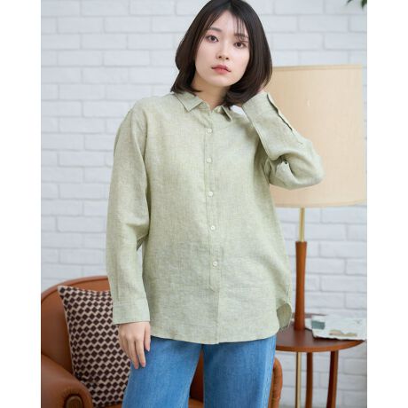 さらに、しわになりにくい加工を施すことで、リネンならではの軽やかさはそのままに、きちんと感をキープ。忙しい日常でも扱いやすく、清潔感のある印象を保ちます。