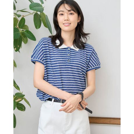 可愛らしいポロディティールがアクセントになり、デイリーな日常着として幅広く活躍する軽やかな一枚です。