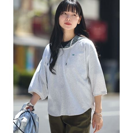 ゴールデンベアオリジナルのチェック柄生地とカットソーを組み合わせた、異素材コンビのプルオーバーフーディです。