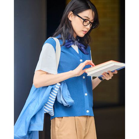 「いつもの装いに、少しだけ変化を加えたい」そんな時にサッと重ねるだけで表情を変えてくれる前あきニットベストです。
