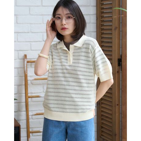 透かし編みニットポロ