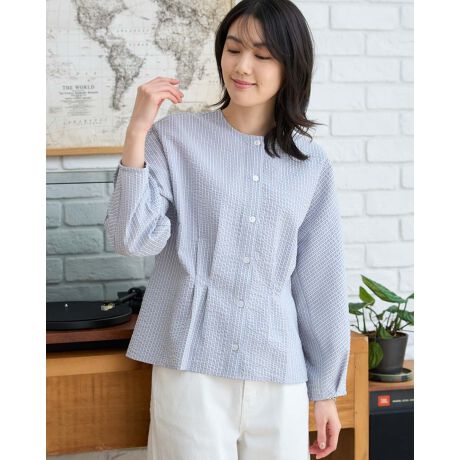 軽量でサッカー素材ならではの波状の凹凸が肌に触れる面積を減らし、熱や湿気を逃がすため、春夏も涼しく快適にお召しいただけます。