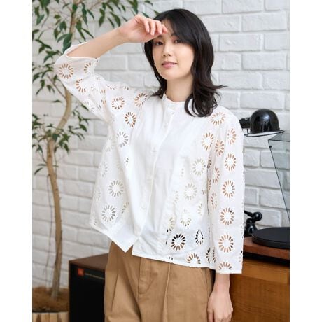 袖のレースは透けすぎない絶妙なバランスにこだわり、大人世代でも取り入れやすい甘さに仕上げています。