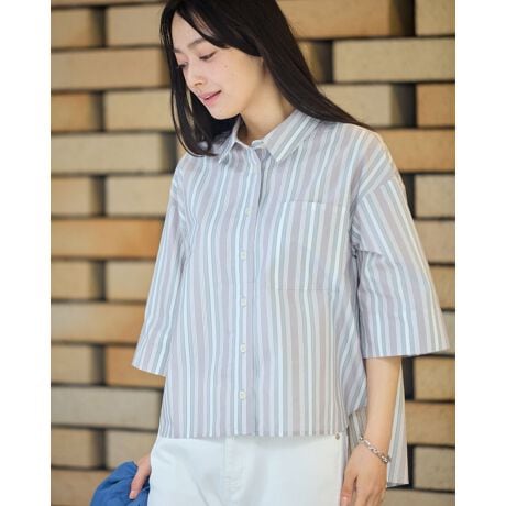 清涼感のあるドビーストライプが映える、正統派ながらも柔らかさを備えたシャツです。