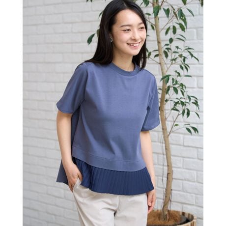 さらっと肌触りの良い天竺素材をボディに使用し、裾には細かいプリーツを施したシフォンをあしらい、動きに上品さを演出します。
