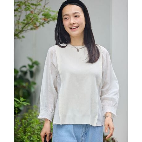 ニットの優しさと異素材の軽やかさを掛け合わせた、1枚でサマになるドッキングプルオーバーです。