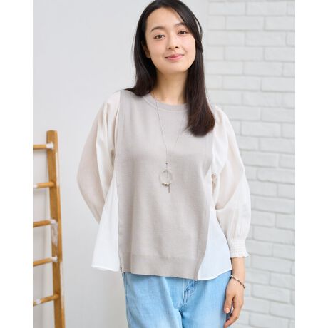 ニットの優しさと異素材の軽やかさを掛け合わせた、1枚でサマになるドッキングプルオーバーです。