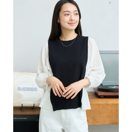 ニットの優しさと異素材の軽やかさを掛け合わせた、1枚でサマになるドッキングプルオーバーです。