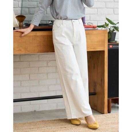 ヨコ方向に適度な伸縮性を持たせた、しなやかな質感のワイドデニムパンツです。