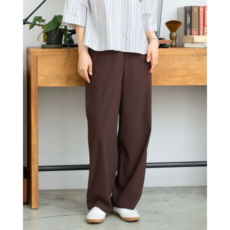 着脱しやすいプルオンタイプで、フロントウエストはフラットな仕様にすることで腹部の着膨れを抑え、すっきりと見え、トップスの裾をインしても綺麗にまとまります。