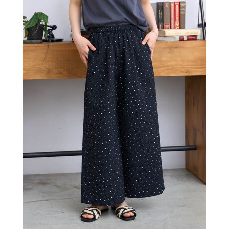 ほどよく広がる裾が動きに合わせて揺れ、リラックス感の中にも上品な印象を演出します。