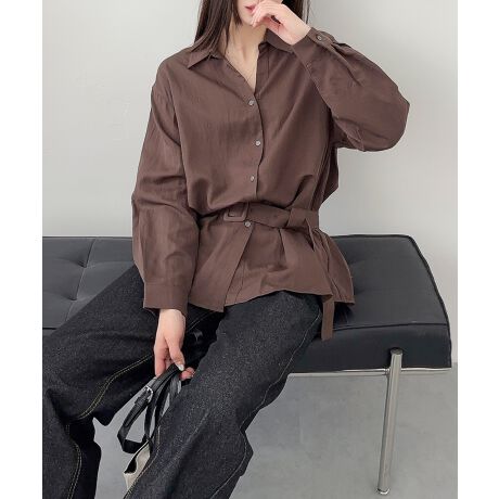 ウエストベルトがアクセントになったデザインシャツ。