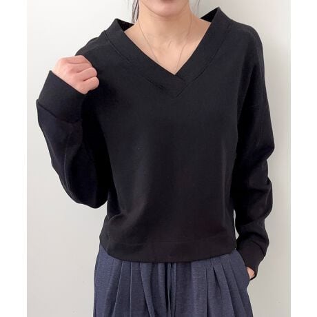 深めのVネックが魅力のスウェットプルオーバー。?肌ざわりのよいコットン素材でリラックス感のある着心地。首元を美しく見せる深めのVネックデザイン。
