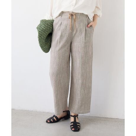 上品なグレンチェックのスラブパンツでジャケットとの相性抜群!