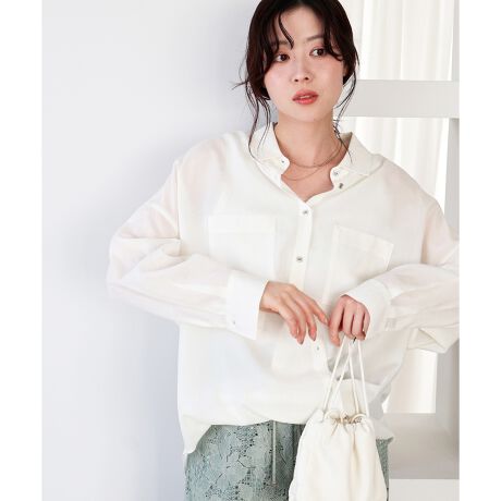 身巾、腕回りなどほどよくゆったりとしてリラックス感でありながら、こなれ見えするシルエットにこだわったシアーシャツ。