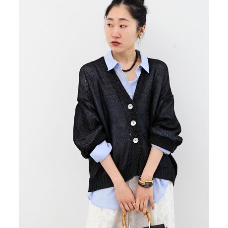 シャリっとした涼やかなタッチと、ふんわりした軽さが魅力のペーパーヤーンカーデ。