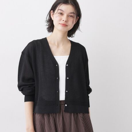 フラットでしっかりとした編地のキレイ目カジュアルなカーディガン。