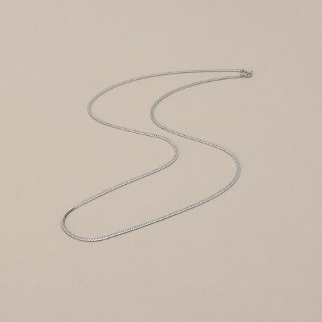 V字型のコマが平たく連続して連なっているフラットヘリンボーンチェーンネックレス。