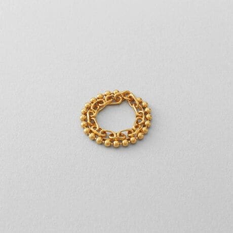 大小のボールチェーンを二連で組み合わせた、立体感のあるリング。