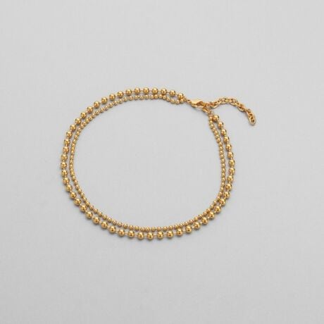 大小のボールチェーンを二連で組み合わせた、立体感のあるネックレス。
