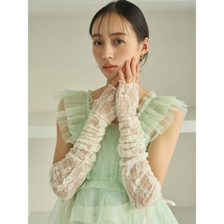 華奢なストレッチレースを使用したアームカバー。