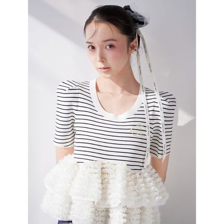 軽やかなニット素材にチュールをドッキング。