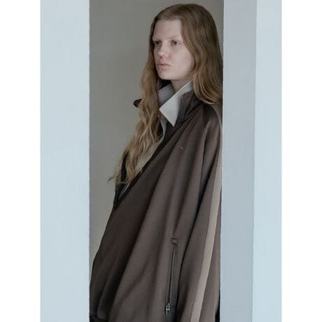 また特徴的な曲線を描いたファスナーとオーバーサイズで表現されたやわらかいシルエットがスポーツ由来でありながらそれとは違う雰囲気を表現したトラックジャケット。