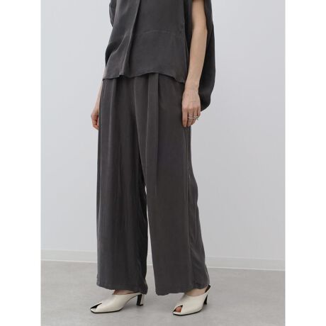 無駄を削ぎ落したベーシックなデザインが、素材の上質さを引き立たせるワイドパンツ。レッグラインを拾わないワイドシルエットに、ウエストは総ゴム仕様のリラクシーな穿き心地。飽きの来ないデザインで、1本あれば重宝すること間違いなしの汎用性の高いアイテムです。