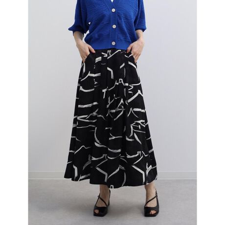 抽象的なラインが斬新なAgaこだわりのアートプリントスカート。優美なシルエットを保ちながら、生地の軽やかさが抜け感を演出するバランスの取れた逸品。一枚で洗練された華やかなスタイルに。ウエストはバックゴム仕様で快適な着心地を叶え、ポケット付きでデザイン性と実用性を兼ね備えています。シンプルなトップスに合わせるだけで大人の個性が光る、今季のワードローブに加えたいアイテムです。