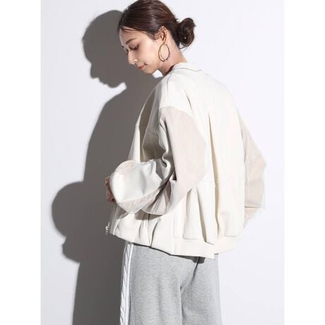 ポンチ素材とチュールの異素材使いを施したデザインブルゾン。