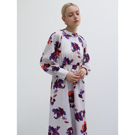 華かな配色のフラワープリントが目を惹くフレアワンピース。色合いとペイントタッチとが相まり、まるで絵画のような奥ゆかしい印象をもつ逸品。ウエストラインはゴム仕様で、快適な着心地を叶えながらさりげなくスタイルアップ効果も。一枚でスタイルが完成し、様見えするワンピースは大人の様々なシーンに寄り添います。