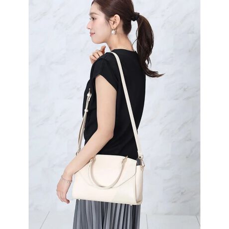フェイクレザーを、シャープで洗練された印象に仕上げた2WAYバッグ。