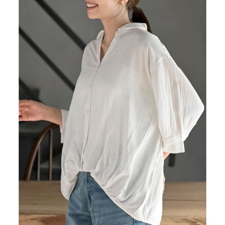 BACKプリーツスキッパー7分袖ブラウス