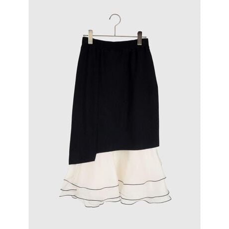 裾のパイピングフリルが目を惹くニットスカート。