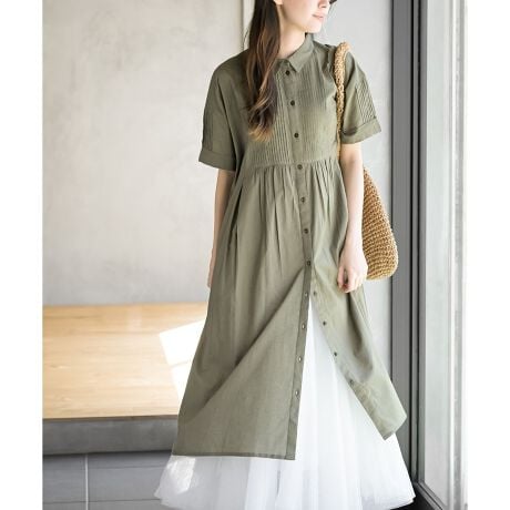 キャンブリックピンタックシャツワンピース