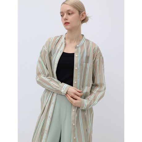 手書きタッチの柄行きと遊び心ある配色が目を惹く、ストライプ柄のロングシャツ。コントラストの効いた配色デザインながらも、素材の軽やかで涼しげな抜け感がバランスの取れた1着。大人カジュアルなロング着丈ですっきりとしたシルエットが特徴的。パンツとのレイヤードスタイルや、夏の紫外線対策の羽織りにも活躍してくれます。
