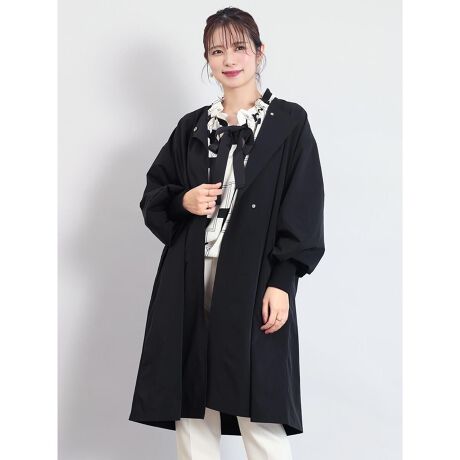 すっきりとしたノーカラーと軽やかな着心地が魅力のスプリングコート。