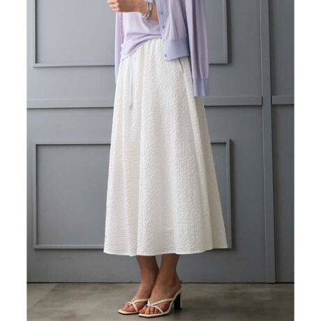 ワッフルのような立体感とほのかな透け感を活かしたギャザースカート。軽やかな素材感が、動くたびにやわらかな表情を生み出します。ウエストはすっきりと仕上げ、分量感がありながらも上品なシルエットに。通気性にも優れ、春夏に心地よく着用いただける一枚です。40サイズは限定店舗展開です。