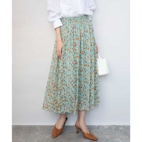 花びらが舞っているようなプリントが印象的なシフォンスカート。落ち感がある素材は広がりすぎないので甘くなりすぎず大人っぽく着こなせます。ウエストゴムでストレスフリーな着心地も嬉しい。