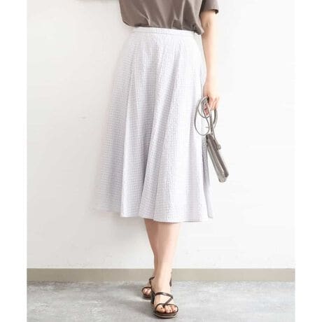 シアーチェック柄フレアスカート/洗える