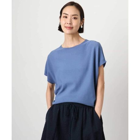 無地見えしながらも表面に変化のある、斜め柄の編み地が特徴。気になる二の腕をさりげなくカバーする、コンパクトなドルマンスリーブデザインです。ホールガーメント編み立てにより、縫い目のないストレスフリーな着心地を実現しました。40サイズは限定店舗展開です。