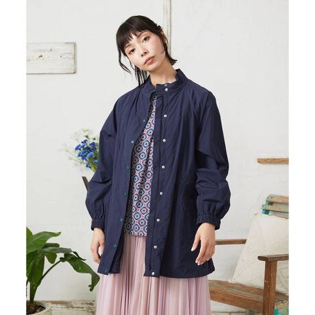 シンプルでデイリー使いにぴったりなナイロン素材のスプリングコート。ゆったりしたシルエットでリラクシーな着用感です。ヒップが隠れる丈感でウエスト周りをカバー、首元はスタンドネックデザインでお顔周りのすっきり見えも叶えます。袖にはゴムが入っており丸みのあるデザインにも注目。ウエスト・裾がドロスト仕様となっており、ウエストを絞ってペプラムに、裾を絞ってバルーンにと、シルエット変化を楽しめる点がポイントです。