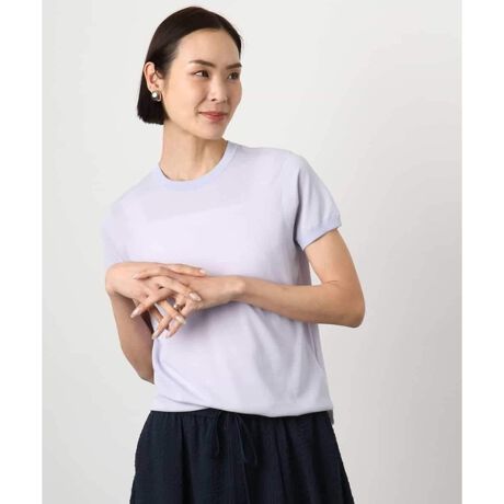 シアーで薄手のニットを、配色で二重に編み立てた半袖プルオーバー。裾はリブを付けずフラットに仕上げ、Tシャツ感覚で軽やかに着られるデザインです。一枚でも奥行きのあるカラーを楽しめ、同素材カーディガンとのアンサンブルスタイルもおすすめです。40サイズは限定店舗展開です。