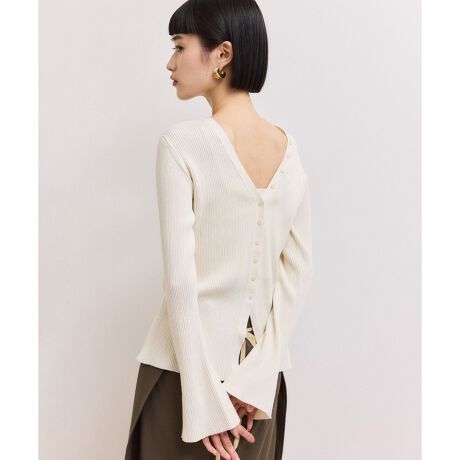 ボタンを後ろにして着用すると、大胆に背中を開けたコンパクトトップスに。