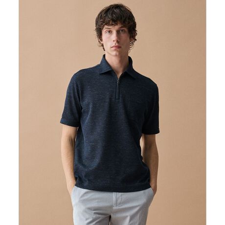 【フランス産リネン×日本の技術・清涼感】ノルマンディリネントップジャージー ジップポロシャツ清涼感と機能性を両立した大人のジップポロシャツ