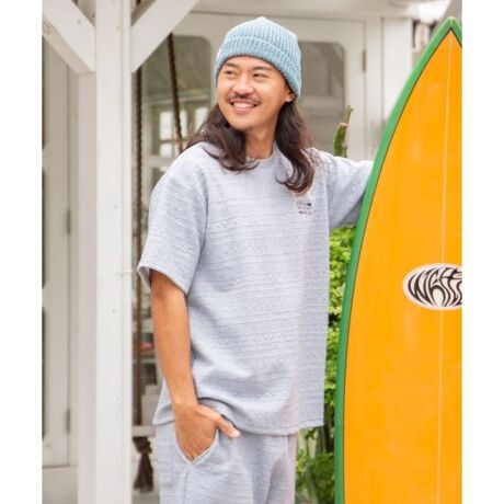 [型番:4CA-6115-2026]ストレッチ性のあるふくれジャカード素材を使用したメンズTシャツ。快適な着心地が特徴。ハーフパンツやパンツとのセットアップコーデにもおすすめです。