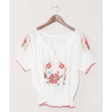 【チャイハネ】花刺繍クロスステッチトップス
